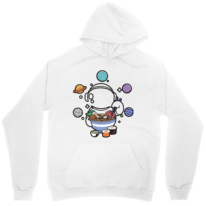 Digital printing is an amazing process that involves your artwork “Astronaut Ramen” being processed by a computer and then printed directly onto the surface of your product. Digital printing is not a heat transfer or applique, as the ink directly adheres to the fabric of your shirt. Each printing process has its strengths, and our artwork team will weigh these when deciding which to use for your art.