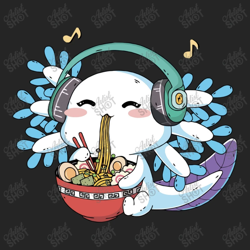 Digital printing is an amazing process that involves your artwork “Axolotl Ramen Noodles” being processed by a computer and then printed directly onto the surface of your product. Digital printing is not a heat transfer or applique, as the ink directly adheres to the fabric of your shirt. Each printing process has its strengths, and our artwork team will weigh these when deciding which to use for your art.