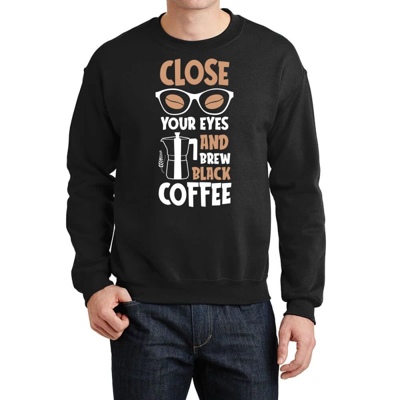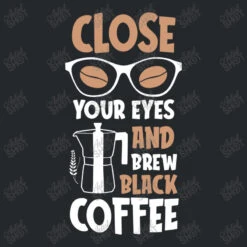 Digital printing is an amazing process that involves your artwork “Close Your Eyes And Brew Black Coffee” being processed by a computer and then printed directly onto the surface of your product. Digital printing is not a heat transfer or applique, as the ink directly adheres to the fabric of your shirt. Each printing process has its strengths, and our artwork team will weigh these when deciding which to use for your art.