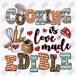 Digital printing is an amazing process that involves your artwork “Cooking Is Love Made Edible” being processed by a computer and then printed directly onto the surface of your product. Digital printing is not a heat transfer or applique, as the ink directly adheres to the fabric of your shirt. Each printing process has its strengths, and our artwork team will weigh these when deciding which to use for your art.