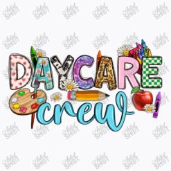 Digital printing is an amazing process that involves your artwork “Daycare Crew” being processed by a computer and then printed directly onto the surface of your product. Digital printing is not a heat transfer or applique, as the ink directly adheres to the fabric of your shirt. Each printing process has its strengths, and our artwork team will weigh these when deciding which to use for your art.