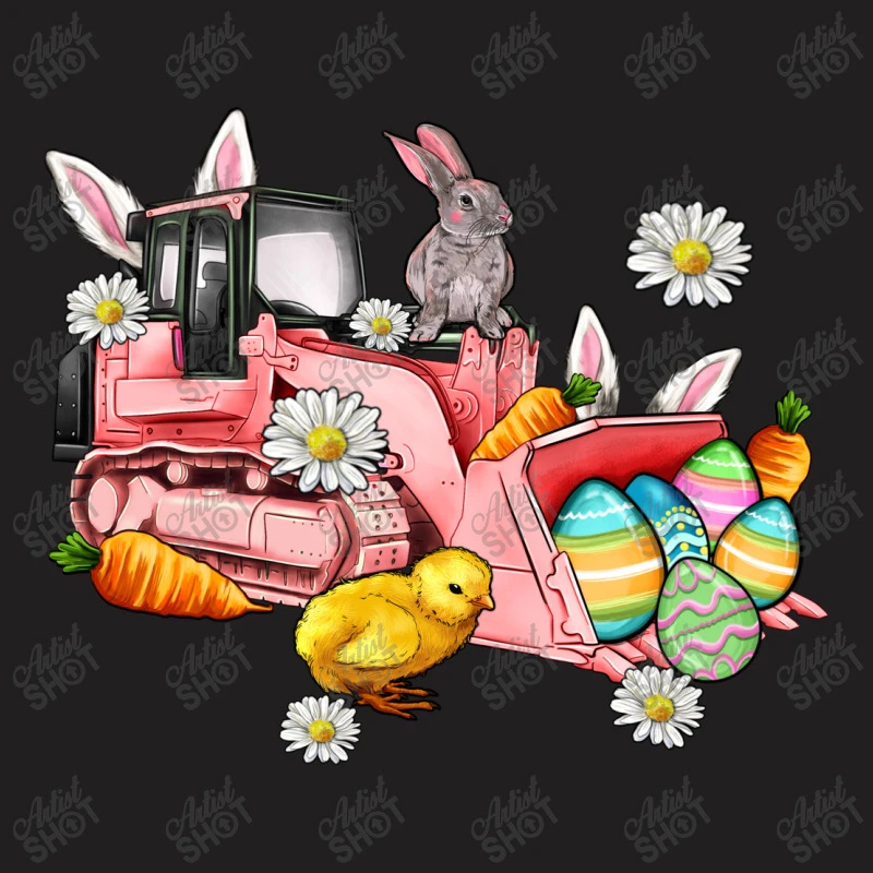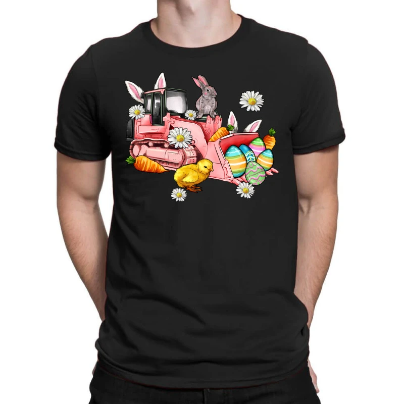 Digital printing is an amazing process that involves your artwork “Easter Excavator” being processed by a computer and then printed directly onto the surface of your product. Digital printing is not a heat transfer or applique, as the ink directly adheres to the fabric of your shirt. Each printing process has its strengths, and our artwork team will weigh these when deciding which to use for your art.