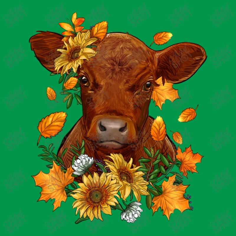This fall red angus calf dried leaves and sunflowers is available in a vast array of color options,