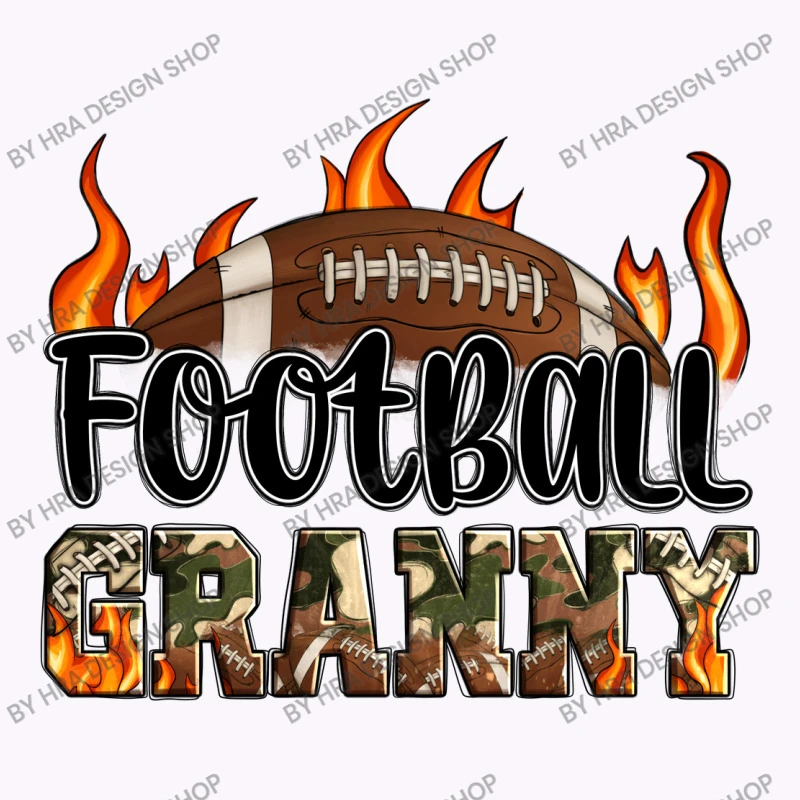 Digital printing is an amazing process that involves your artwork “Football Granny” being processed by a computer and then printed directly onto the surface of your product. Digital printing is not a heat transfer or applique, as the ink directly adheres to the fabric of your shirt. Each printing process has its strengths, and our artwork team will weigh these when deciding which to use for your art.