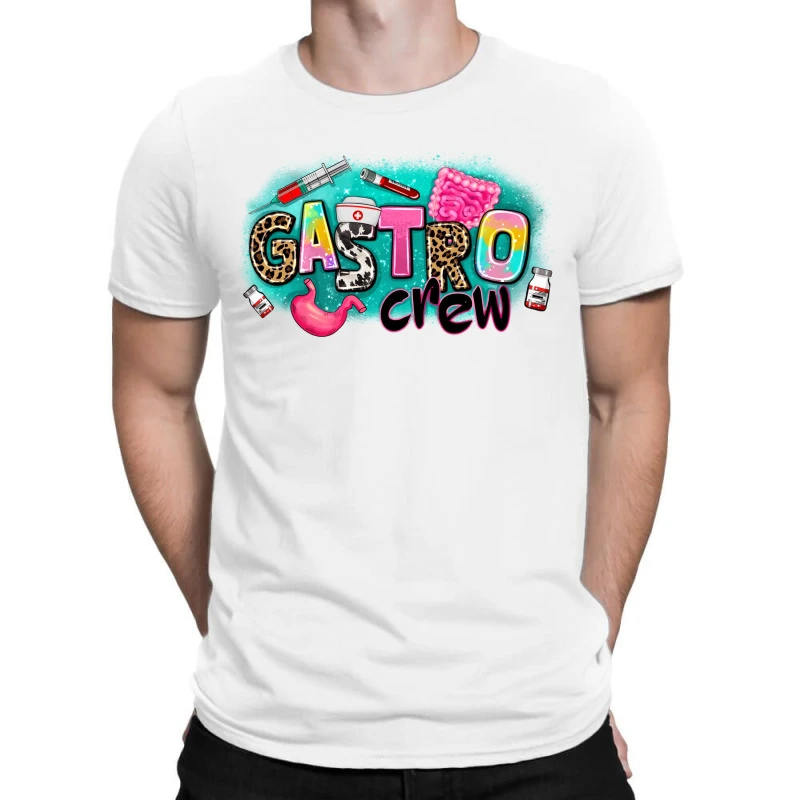 Digital printing is an amazing process that involves your artwork “Gastro Crew” being processed by a computer and then printed directly onto the surface of your product. Digital printing is not a heat transfer or applique, as the ink directly adheres to the fabric of your shirt. Each printing process has its strengths, and our artwork team will weigh these when deciding which to use for your art.