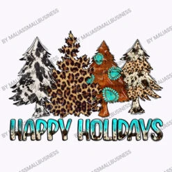 Digital printing is an amazing process that involves your artwork “Happy Holidays Trees” being processed by a computer and then printed directly onto the surface of your product. Digital printing is not a heat transfer or applique, as the ink directly adheres to the fabric of your shirt. Each printing process has its strengths, and our artwork team will weigh these when deciding which to use for your art.