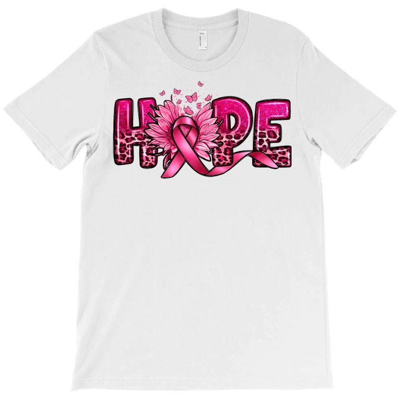 Digital printing is an amazing process that involves your artwork “Hope” being processed by a computer and then printed directly onto the surface of your product. Digital printing is not a heat transfer or applique, as the ink directly adheres to the fabric of your shirt. Each printing process has its strengths, and our artwork team will weigh these when deciding which to use for your art.