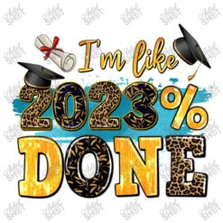 Digital printing is an amazing process that involves your artwork “I M Like 2023 Done” being processed by a computer and then printed directly onto the surface of your product. Digital printing is not a heat transfer or applique, as the ink directly adheres to the fabric of your shirt. Each printing process has its strengths, and our artwork team will weigh these when deciding which to use for your art.