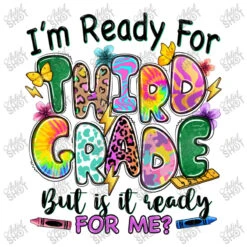 Digital printing is an amazing process that involves your artwork “I’m Ready For Third Grade But Is It Ready For Me” being processed by a computer and then printed directly onto the surface of your product. Digital printing is not a heat transfer or applique, as the ink directly adheres to the fabric of your shirt. Each printing process has its strengths, and our artwork team will weigh these when deciding which to use for your art.