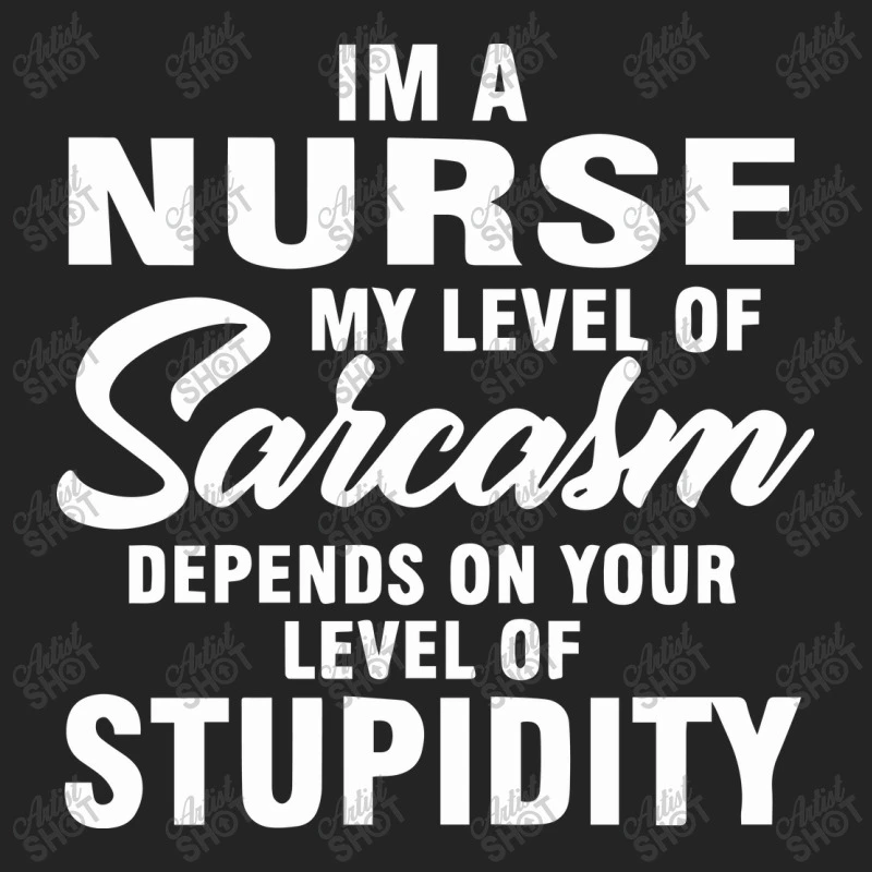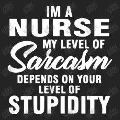 Digital printing is an amazing process that involves your artwork “Im A Nurse My Level Of Sarcasm Depends On Your Lev” being processed by a computer and then printed directly onto the surface of your product. Digital printing is not a heat transfer or applique, as the ink directly adheres to the fabric of your shirt. Each printing process has its strengths, and our artwork team will weigh these when deciding which to use for your art.