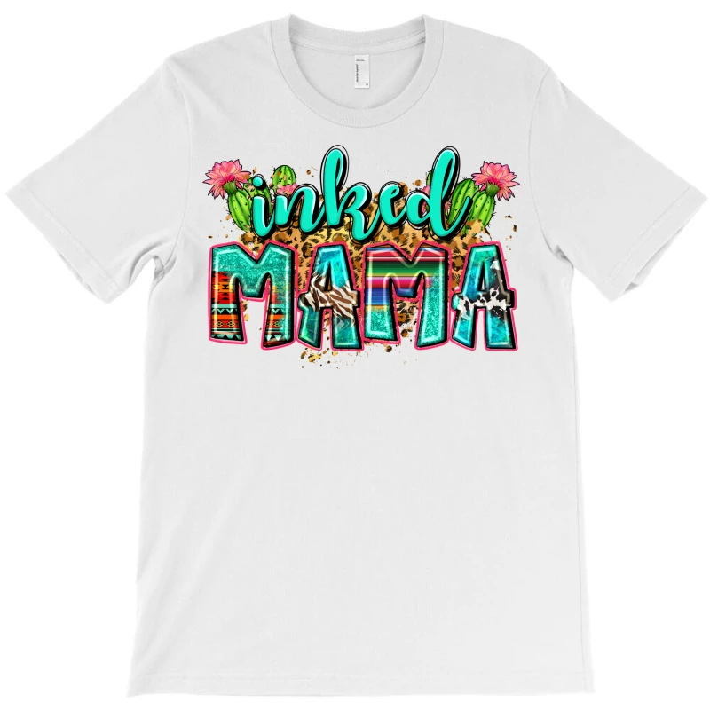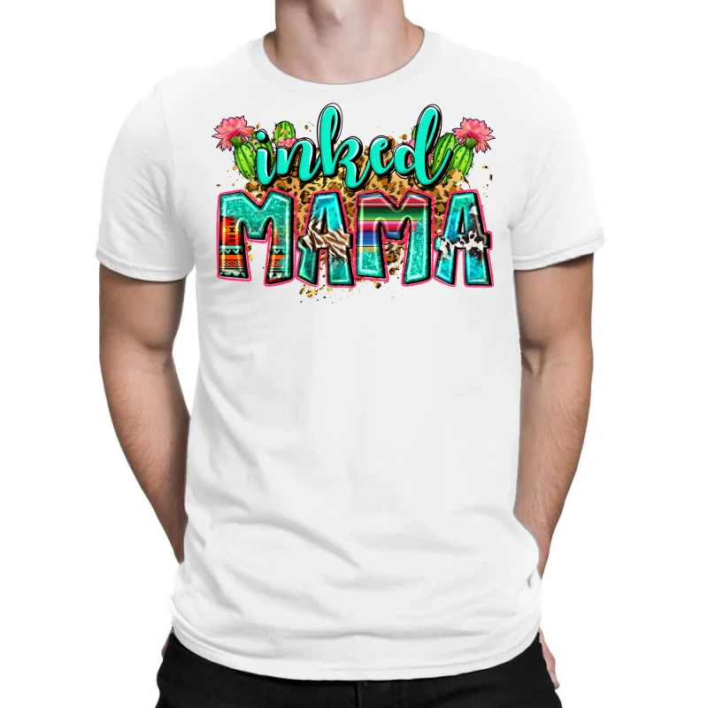 Digital printing is an amazing process that involves your artwork “Inked Mama” being processed by a computer and then printed directly onto the surface of your product. Digital printing is not a heat transfer or applique, as the ink directly adheres to the fabric of your shirt. Each printing process has its strengths, and our artwork team will weigh these when deciding which to use for your art.