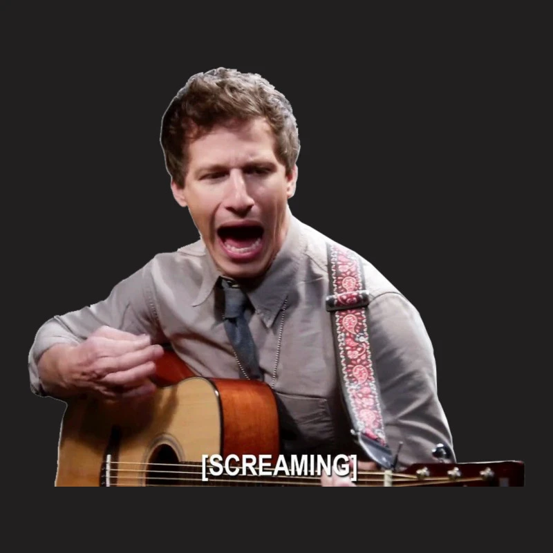 Plot Printing Consists of both Flock and Flex Print, This process transfers your artwork “Jake Peralta Screaming” from a special foil through an immense amount of pressure and heat. Flex images are smooth, a little plastic like and a tad bit glossy. Flock images have a fuzzy velvet-like texture and appear slightly more elevated. Think of drawing just the shadows and how that would appear without color. 3 colors plus the color of the garment itself is used to print.