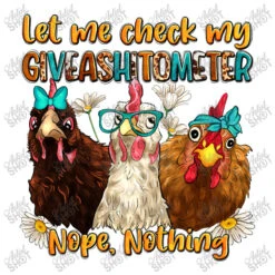 Digital printing is an amazing process that involves your artwork “Let Me Check My Giveashitometer Nope Nothing” being processed by a computer and then printed directly onto the surface of your product. Digital printing is not a heat transfer or applique, as the ink directly adheres to the fabric of your shirt. Each printing process has its strengths, and our artwork team will weigh these when deciding which to use for your art.