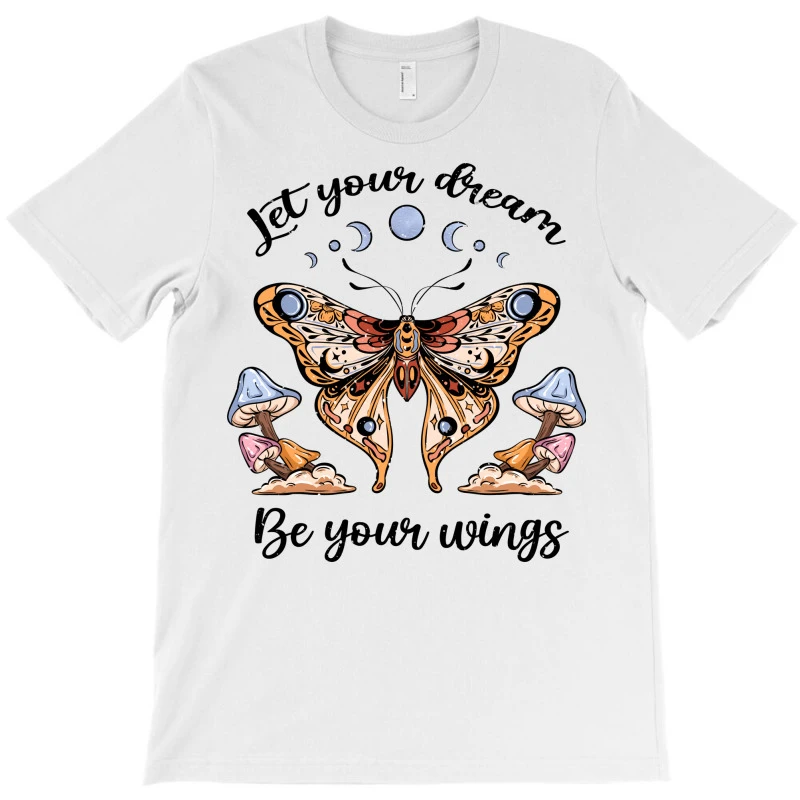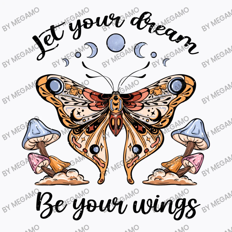 Digital printing is an amazing process that involves your artwork “Let Your Dreams Be Your Wings Sublimati” being processed by a computer and then printed directly onto the surface of your product. Digital printing is not a heat transfer or applique, as the ink directly adheres to the fabric of your shirt. Each printing process has its strengths, and our artwork team will weigh these when deciding which to use for your art.