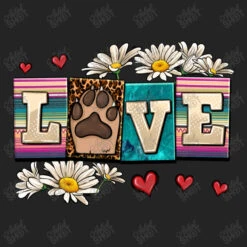 Digital printing is an amazing process that involves your artwork “Love Dog” being processed by a computer and then printed directly onto the surface of your product. Digital printing is not a heat transfer or applique, as the ink directly adheres to the fabric of your shirt. Each printing process has its strengths, and our artwork team will weigh these when deciding which to use for your art.