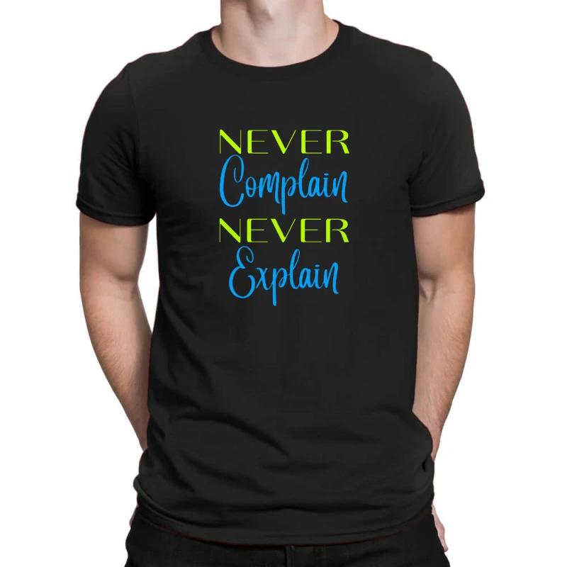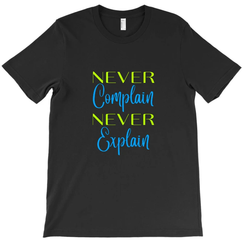 This Never Complain Never Explain Funny is available in a vast array of color options,