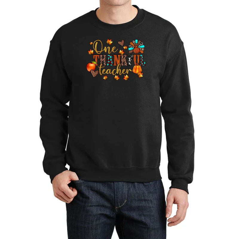 Digital printing is an amazing process that involves your artwork “One Thankful Teacher” being processed by a computer and then printed directly onto the surface of your product. Digital printing is not a heat transfer or applique, as the ink directly adheres to the fabric of your shirt. Each printing process has its strengths, and our artwork team will weigh these when deciding which to use for your art.