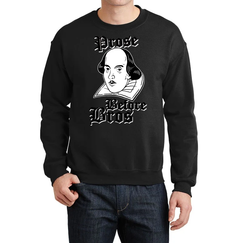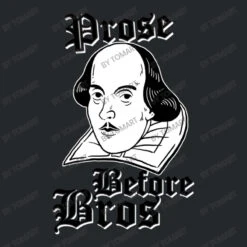 Digital printing is an amazing process that involves your artwork “Prose Before Bros” being processed by a computer and then printed directly onto the surface of your product. Digital printing is not a heat transfer or applique, as the ink directly adheres to the fabric of your shirt. Each printing process has its strengths, and our artwork team will weigh these when deciding which to use for your art.