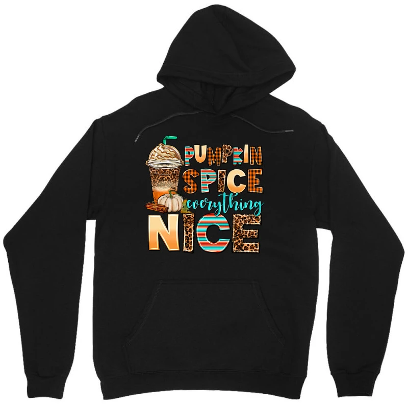 Digital printing is an amazing process that involves your artwork “Pumpkin Spice Everything Nice” being processed by a computer and then printed directly onto the surface of your product. Digital printing is not a heat transfer or applique, as the ink directly adheres to the fabric of your shirt. Each printing process has its strengths, and our artwork team will weigh these when deciding which to use for your art.