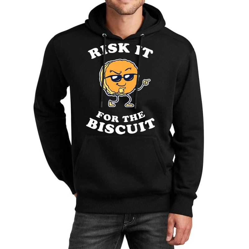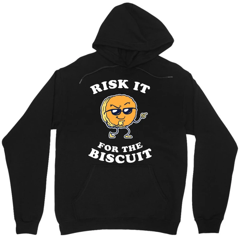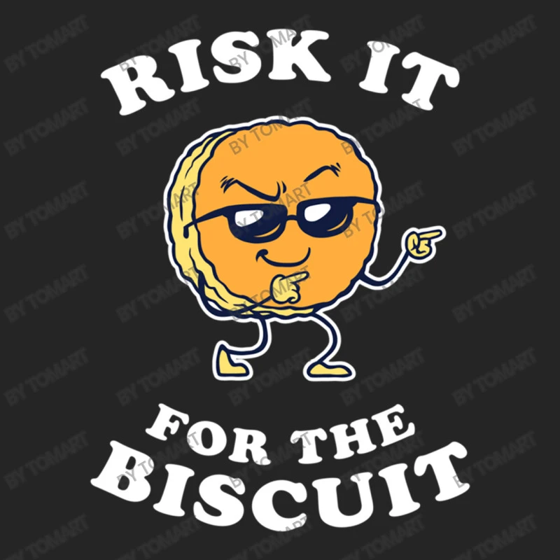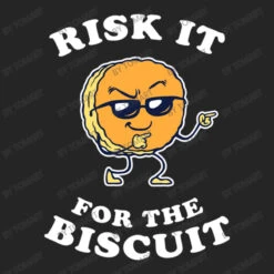 Digital printing is an amazing process that involves your artwork “Risk It For The Biscuit” being processed by a computer and then printed directly onto the surface of your product. Digital printing is not a heat transfer or applique, as the ink directly adheres to the fabric of your shirt. Each printing process has its strengths, and our artwork team will weigh these when deciding which to use for your art.