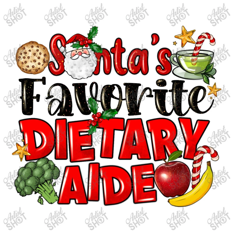 Digital printing is an amazing process that involves your artwork “Santas Favorite Dietary Aide” being processed by a computer and then printed directly onto the surface of your product. Digital printing is not a heat transfer or applique, as the ink directly adheres to the fabric of your shirt. Each printing process has its strengths, and our artwork team will weigh these when deciding which to use for your art.