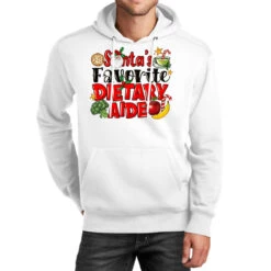 Digital printing is an amazing process that involves your artwork “Santas Favorite Dietary Aide” being processed by a computer and then printed directly onto the surface of your product. Digital printing is not a heat transfer or applique, as the ink directly adheres to the fabric of your shirt. Each printing process has its strengths, and our artwork team will weigh these when deciding which to use for your art.