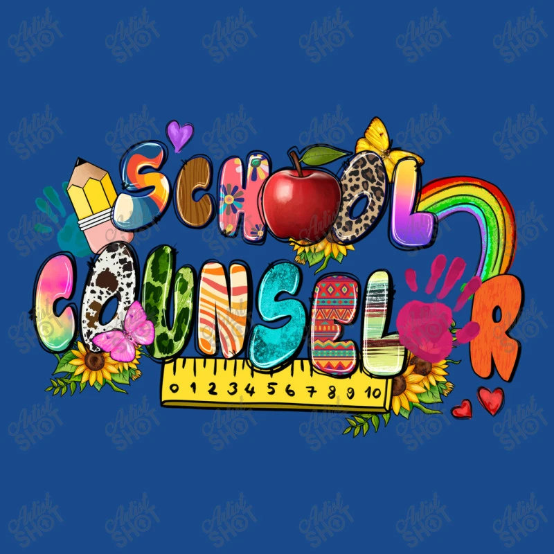 Digital printing is an amazing process that involves your artwork “School Counselor” being processed by a computer and then printed directly onto the surface of your product. Digital printing is not a heat transfer or applique, as the ink directly adheres to the fabric of your shirt. Each printing process has its strengths, and our artwork team will weigh these when deciding which to use for your art.