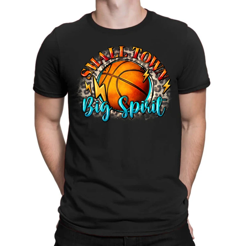Digital printing is an amazing process that involves your artwork “Small Town Big Spirit Basketball” being processed by a computer and then printed directly onto the surface of your product. Digital printing is not a heat transfer or applique, as the ink directly adheres to the fabric of your shirt. Each printing process has its strengths, and our artwork team will weigh these when deciding which to use for your art.