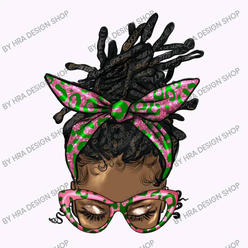 Digital printing is an amazing process that involves your artwork “Sorority Colors Pink And Green Afro Locs Bun Messy” being processed by a computer and then printed directly onto the surface of your product. Digital printing is not a heat transfer or applique, as the ink directly adheres to the fabric of your shirt. Each printing process has its strengths, and our artwork team will weigh these when deciding which to use for your art.
