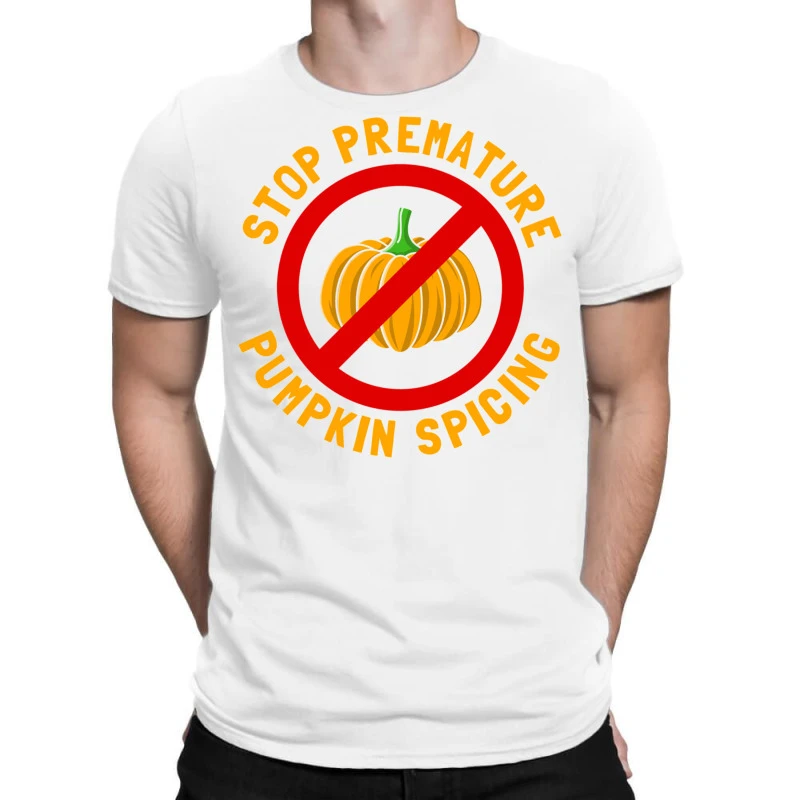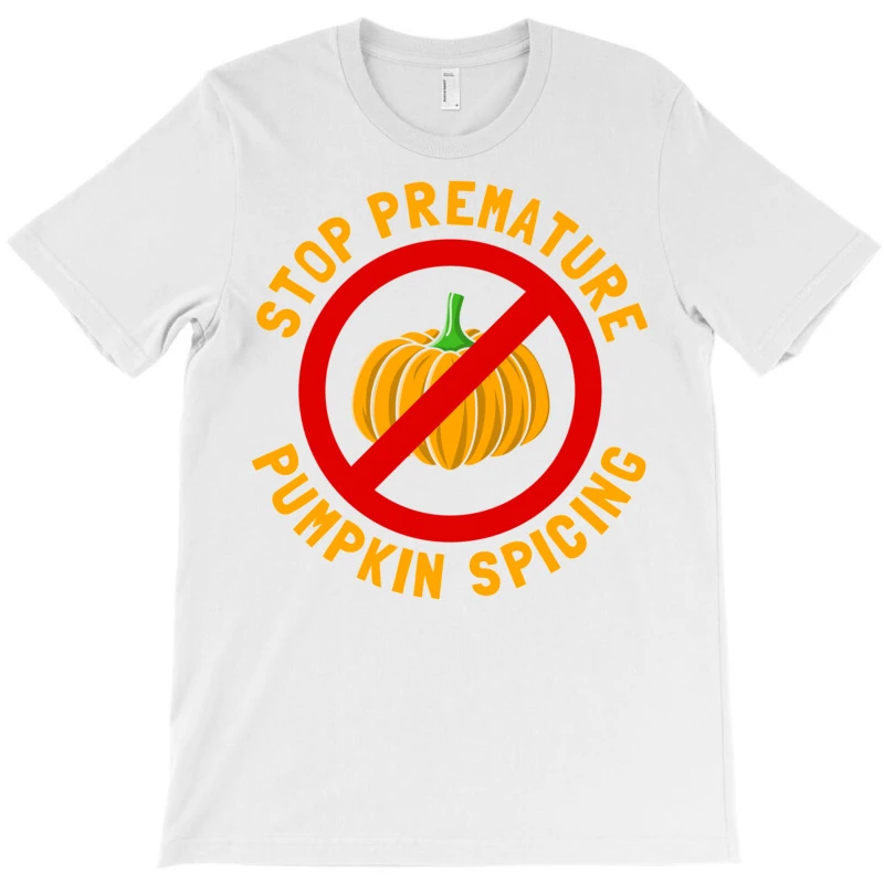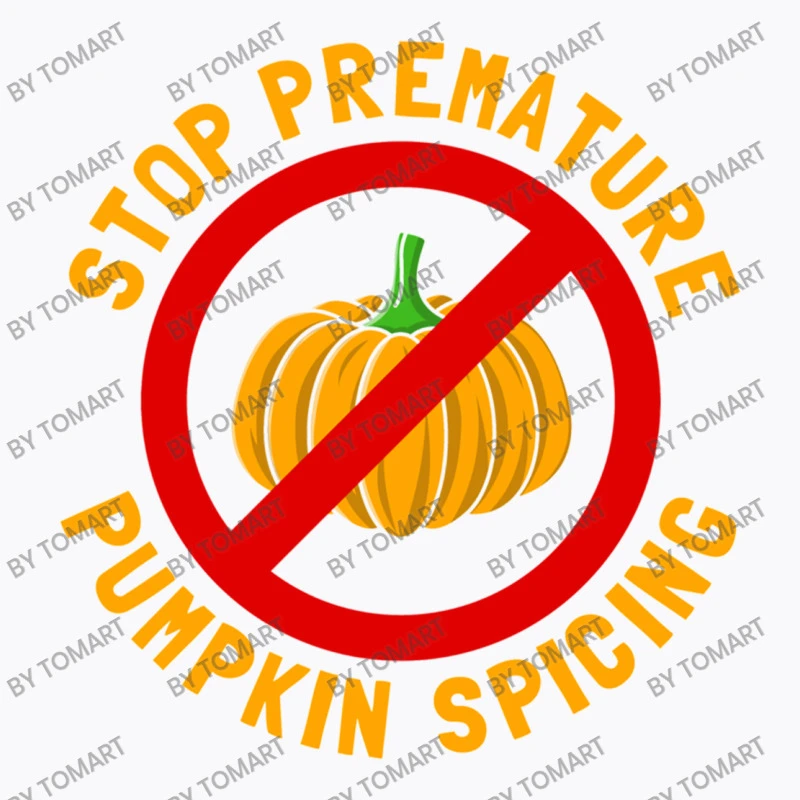 Digital printing is an amazing process that involves your artwork “Stop Premature Pumpkin Spicing” being processed by a computer and then printed directly onto the surface of your product. Digital printing is not a heat transfer or applique, as the ink directly adheres to the fabric of your shirt. Each printing process has its strengths, and our artwork team will weigh these when deciding which to use for your art.