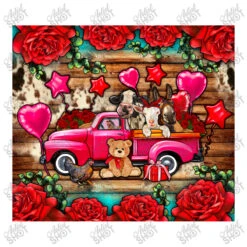 Digital printing is an amazing process that involves your artwork “Valentine’s Day Farm Animals Truck Roses” being processed by a computer and then printed directly onto the surface of your product. Digital printing is not a heat transfer or applique, as the ink directly adheres to the fabric of your shirt. Each printing process has its strengths, and our artwork team will weigh these when deciding which to use for your art.
