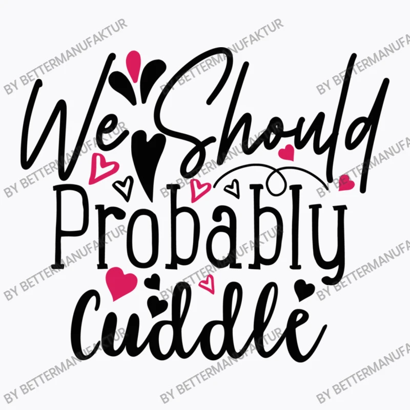 Plot Printing Consists of both Flock and Flex Print, This process transfers your artwork “We Should Probably Cuddle Happy Valentine S Day Ro” from a special foil through an immense amount of pressure and heat. Flex images are smooth, a little plastic like and a tad bit glossy. Flock images have a fuzzy velvet-like texture and appear slightly more elevated. Think of drawing just the shadows and how that would appear without color. 3 colors plus the color of the garment itself is used to print.