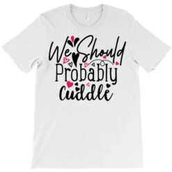 Digital printing is an amazing process that involves your artwork “We Should Probably Cuddle Happy Valentine S Day Ro” being processed by a computer and then printed directly onto the surface of your product. Digital printing is not a heat transfer or applique, as the ink directly adheres to the fabric of your shirt. Each printing process has its strengths, and our artwork team will weigh these when deciding which to use for your art.