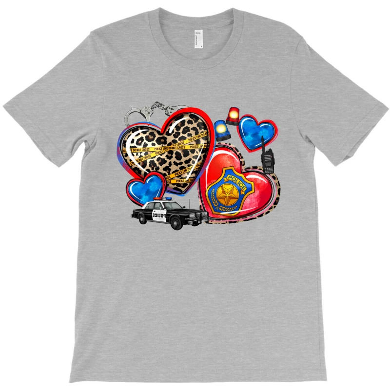 Digital printing is an amazing process that involves your artwork “Western Leopard Police Hearts” being processed by a computer and then printed directly onto the surface of your product. Digital printing is not a heat transfer or applique, as the ink directly adheres to the fabric of your shirt. Each printing process has its strengths, and our artwork team will weigh these when deciding which to use for your art.