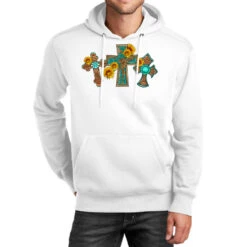 Digital printing is an amazing process that involves your artwork “Western Three Cross With Sunflowers” being processed by a computer and then printed directly onto the surface of your product. Digital printing is not a heat transfer or applique, as the ink directly adheres to the fabric of your shirt. Each printing process has its strengths, and our artwork team will weigh these when deciding which to use for your art.