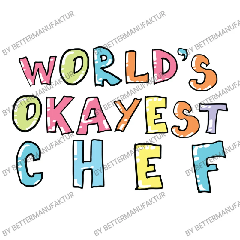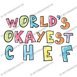 Digital printing is an amazing process that involves your artwork “World S Okayest Chef Gift Idea” being processed by a computer and then printed directly onto the surface of your product. Digital printing is not a heat transfer or applique, as the ink directly adheres to the fabric of your shirt. Each printing process has its strengths, and our artwork team will weigh these when deciding which to use for your art.